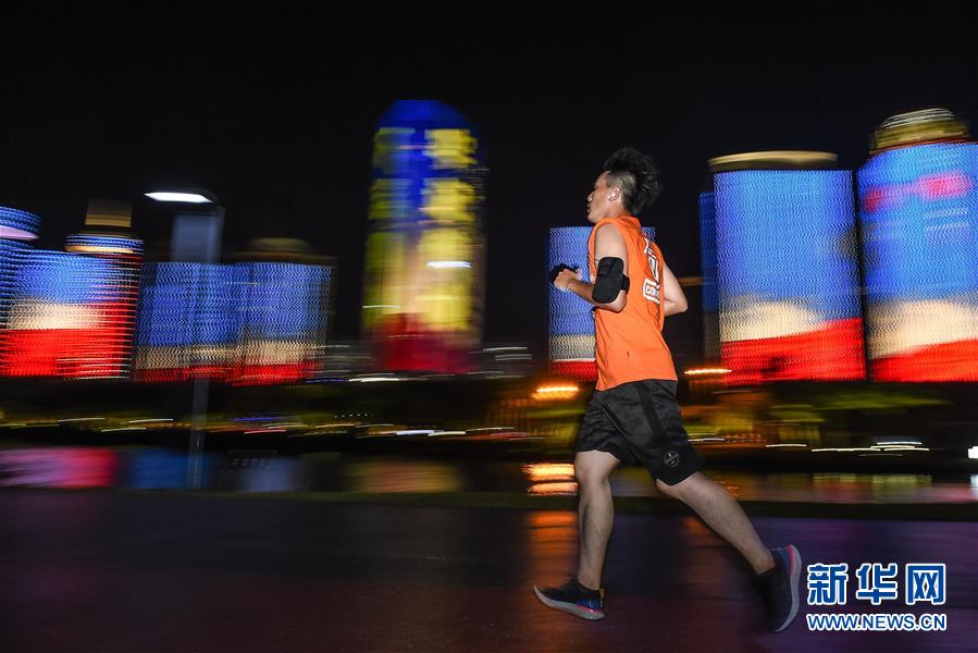 一位市民在海口万绿园夜跑(5月15日拍摄)。 近年来,夜跑成为越来越多都市人热衷的健身方式之一。在海南海口,每当夜幕降临,“夜跑族”来到海口万绿园、世纪公园等夜跑场所跑步,用一身酣畅淋漓的汗水摆脱白天工作中的压力,享受跑步带来的欢愉。 新华社记者 蒲晓旭 摄