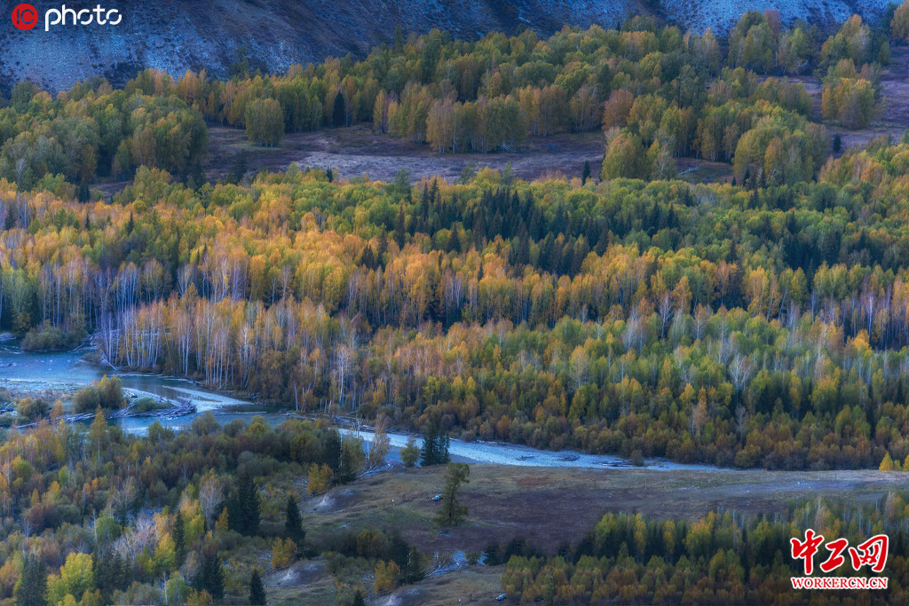 在新疆美丽的喀纳斯景区有一处宁静而古朴的原始村落—白哈巴村,由于地处哈萨克斯坦接壤的边境线上,距离哈萨克斯坦东锡勒克仅1.5公里,并有国防公路相连,所以也被称为西北第一村。图为白哈巴村秋色。陈喆/IC