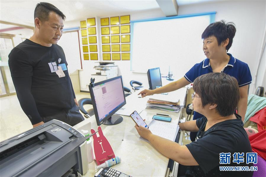 6月12日,在廊坊市广阳区迎春北路社区,工作人员对录入的居民信息进行审核。新华社记者 李晓果 摄