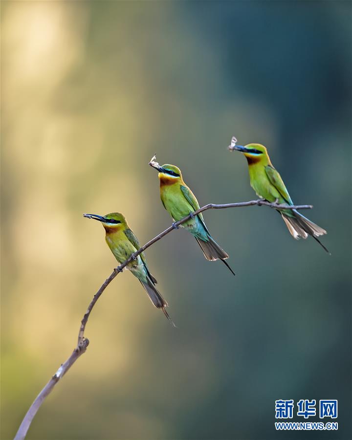 栗喉蜂虎在福建省晋江市深沪镇科任村一山坡上觅食嬉戏(6月12日摄)。 入夏以来,逾百只栗喉蜂虎飞临闽南晋江市深沪镇科任村筑巢栖息。 新华社记者记者 梅永存 摄