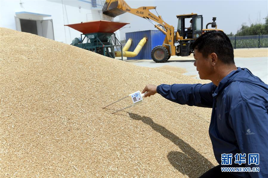 6月13日,魏德东在测量收割的小麦水分。新华社记者 范长国 摄