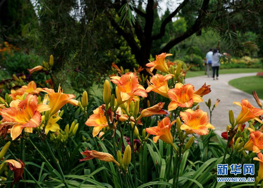 6月13日,上海应用技术大学奉贤校区校园内,萱草花竞相开放。 当日,“2020中国(上海)萱草文化节”在上海应用技术大学开幕,校园里数百个品种的萱草花竞相绽放,萱草科研推广、萱草文化交流等多项活动同时举行。 新华社记者刘颖摄