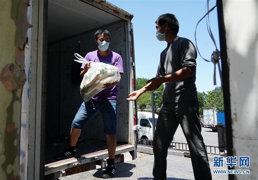 6月14日,商户在国际水产城场地搬运蔬菜。新华社记者 张晨霖 摄
