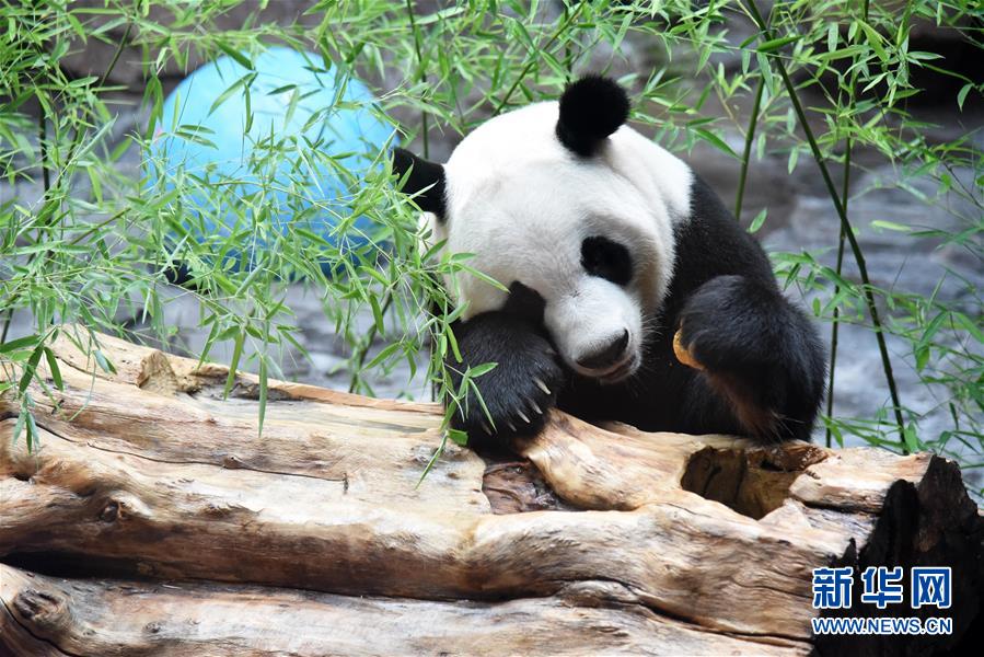 济南:大熊猫享清凉
