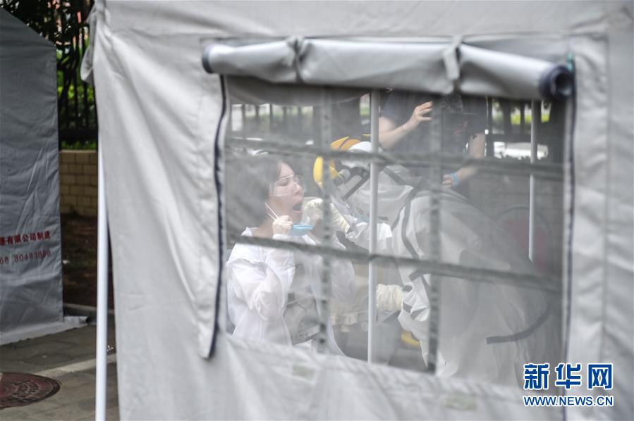 6月15日,在北京市东城区地坛体育馆外的采样点,市民在进行核酸检测采样。 新华社记者 彭子洋 摄