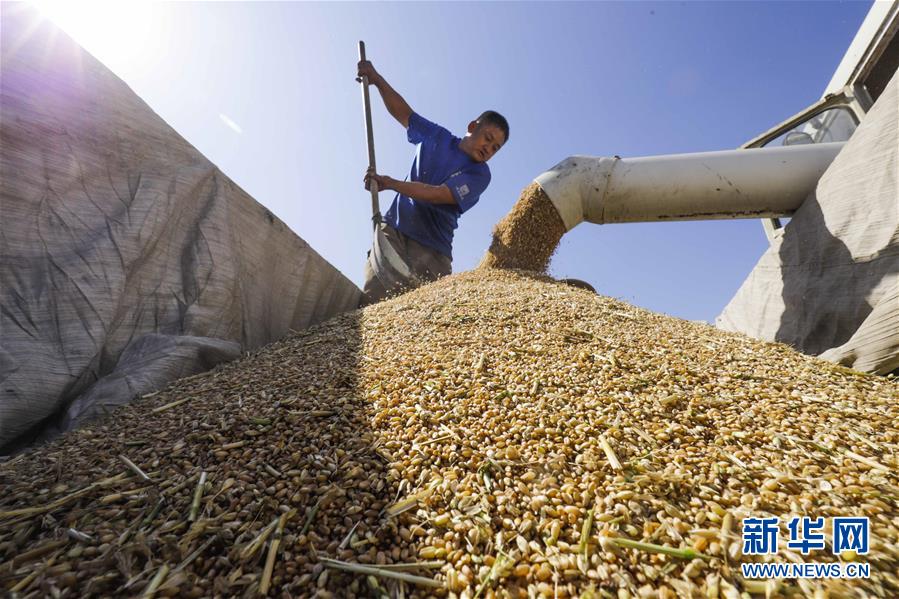 6月15日,河北省遵化市东新庄镇后毛庄村农民在田间收获小麦。 新华社发(刘满仓 摄)