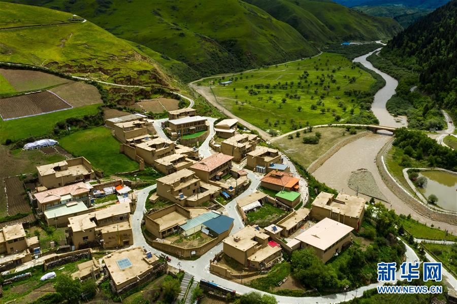 这是6月15日拍摄的神座景区神座村里的藏式住宅(无人机照片)。 新华社记者 沈伯韩 摄