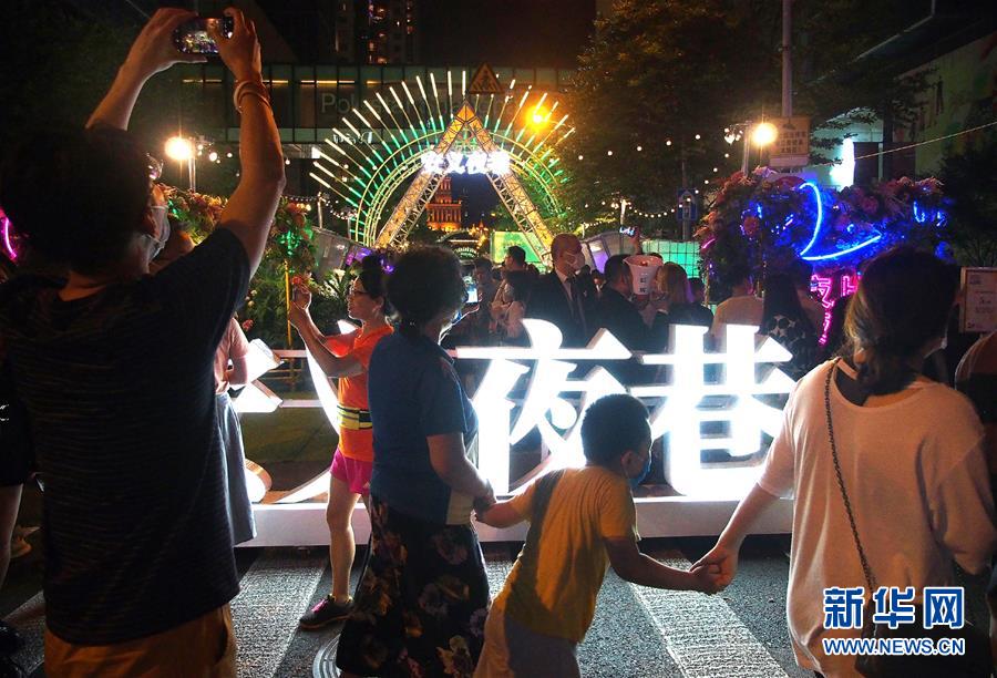 游客在上海市静安寺附近的安义夜巷享受夜晚休闲时光(6月7日摄)。新华社记者 陈飞 摄