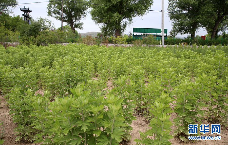 这是6月13日拍摄的加工扶贫车间园区内种植的艾蒿。