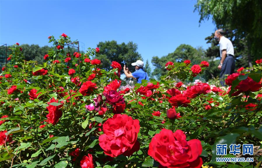 6月16日,市民在长春市儿童公园内赏花。 连日来,长春市儿童公园玫瑰园内的近8万株玫瑰花竞相绽放,吸引不少游客前来赏花。近年来,长春市积极发展城市休闲旅游,推进“拆围透绿”“补植增绿”实施工程,让更多的绿色空间融入市民的生活。 新华社记者 林宏 摄