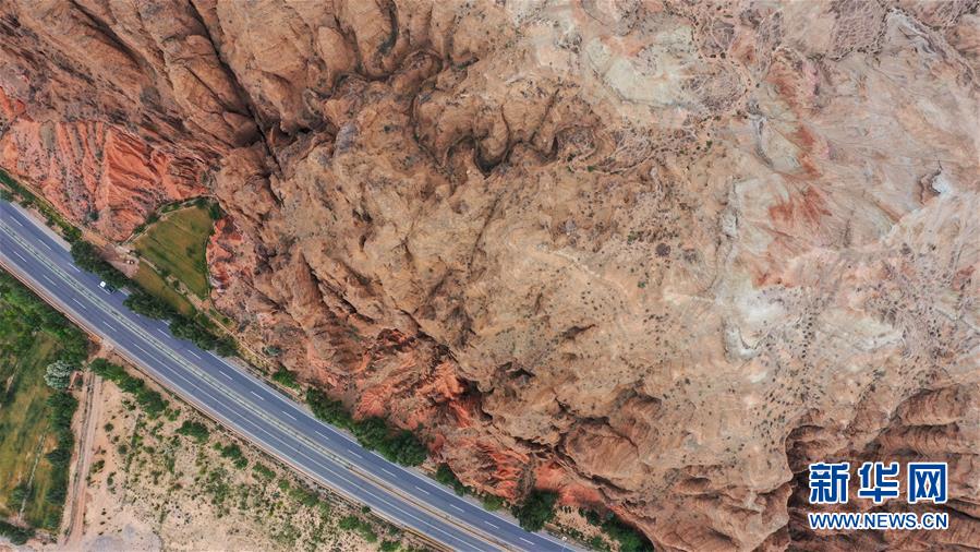 这是6月15日拍摄的位于贵德县境内的丹霞地貌(无人机照片)。 夏日时节,位于青海省海南藏族自治州的贵德县迎来连日降雨,多彩的丹霞地貌在雨后色泽愈发鲜艳,在云雾的笼罩下形成一幅幅独特画卷。 新华社记者 吴刚 摄