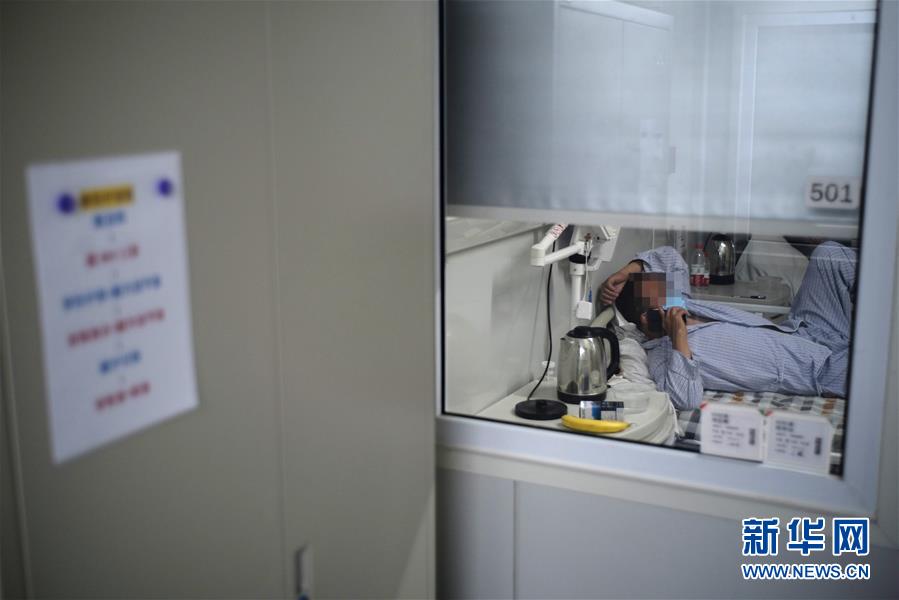 6月16日,一名患者在北京地坛医院隔离病房内打电话。新华社记者 彭子洋 摄