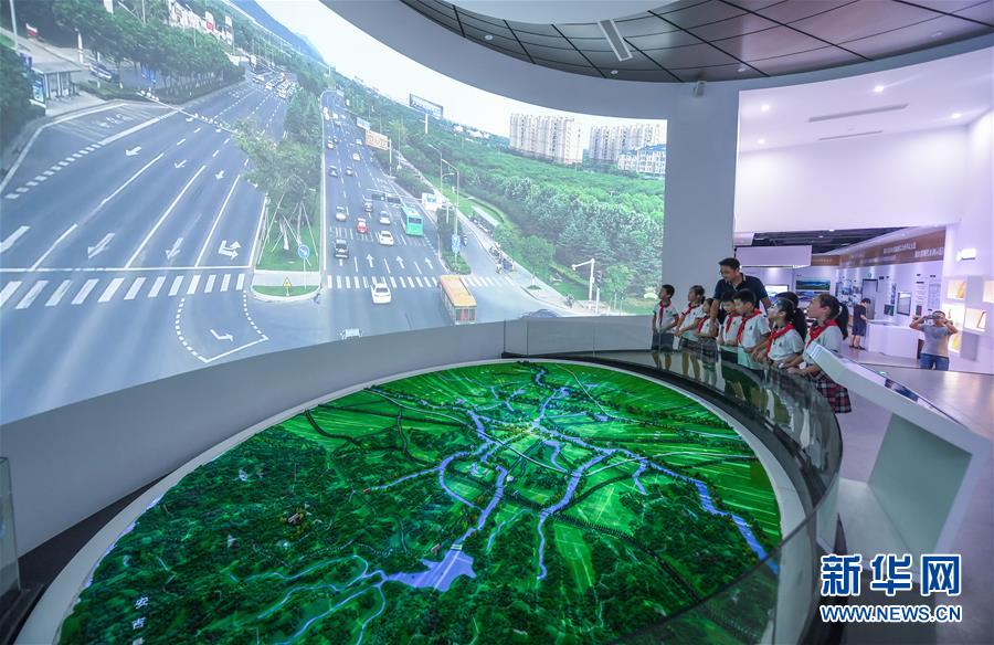 6月17日,洛舍镇中心学校的学生们在听水情馆的水利专家讲解水情知识。新华社记者 徐昱 摄