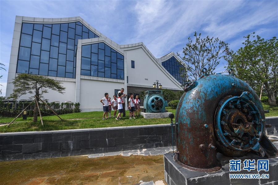 6月17日,洛舍镇中心学校的学生们在听水情馆的水利专家讲解轴流泵等水利设备。新华社记者 徐昱 摄