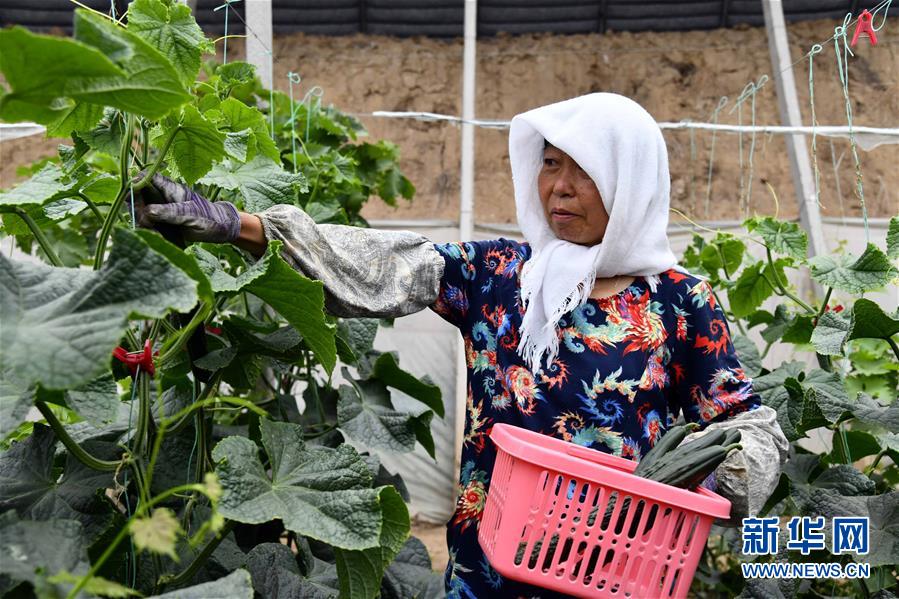 6月17日,在潍坊市寒亭区鲁夏幸福码头农场,村民在采摘黄瓜。 1988年出生的夏俊磊原本从事信息化工程行业,2016年回到家乡山东省潍坊市寒亭区固堤街道,流转1000亩地,创办幸福码头农场,种植葡萄、有机蔬菜,养殖鸡鸭。幸福码头农场采用线上“互联网+农业”进行销售,线下在潍坊市区设立直营店,并推行会员制,不断拓展销售渠道。 夏俊磊的幸福码头农场不断壮大,通过成立农业种植专业合作社,农场面积如今已达8000余亩,吸纳周边村民1200余人,实现着增收致富梦。 新华社记者 郭绪雷 摄