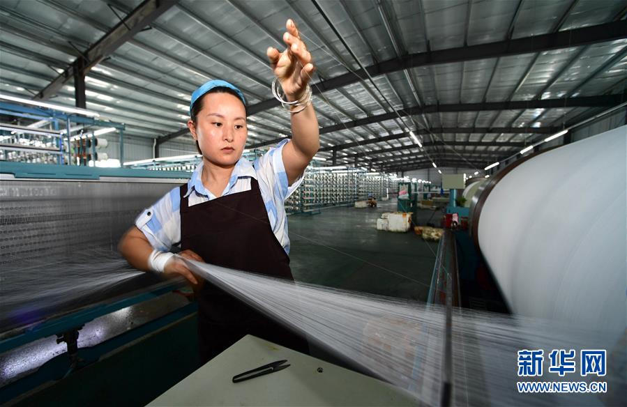 6月17日,易地扶贫搬迁群众在松桃苗族自治县一家纺织厂务工。新华社记者 杨楹 摄
