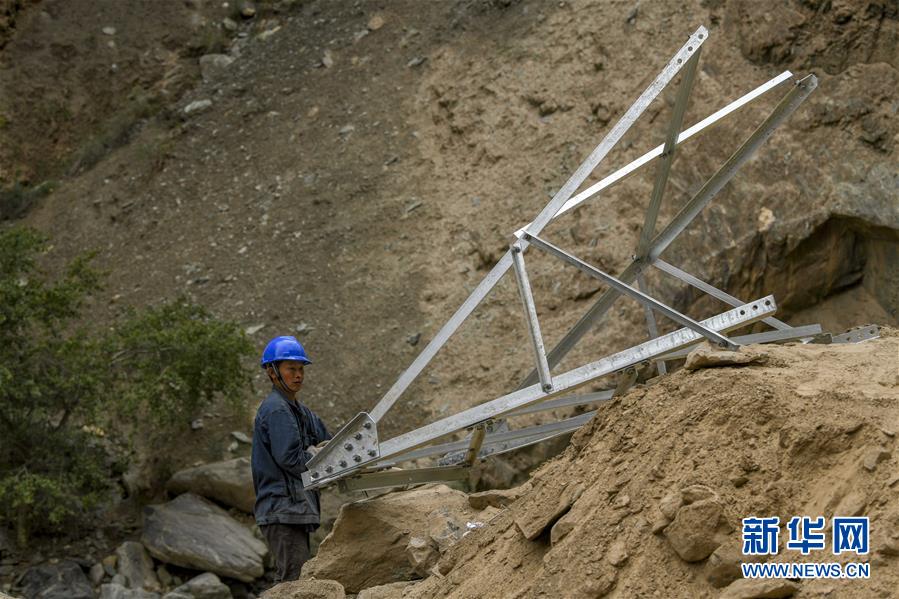 电力工人在新疆塔什库尔干塔吉克自治县大同乡施工(6月12日摄)。新华社记者 胡虎虎 摄