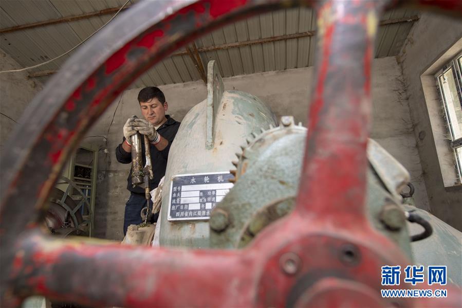 在新疆塔什库尔干塔吉克自治县大同乡,阿米尔江·艾力木在“小水电”站房内维护设备(6月13日摄)。新华社记者 胡虎虎 摄