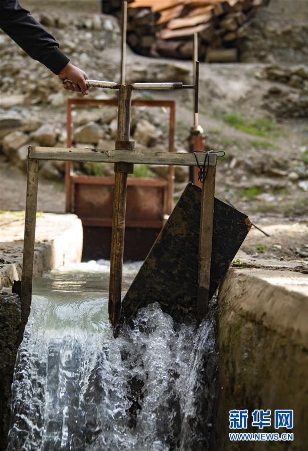 完成清理工作后,阿米尔江·艾力木在检查拦水闸(6月14日摄)。新华社记者 胡虎虎 摄