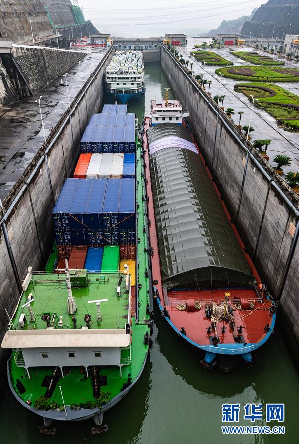 6月17日,船舶有序通过三峡五级船闸。新华社发(郑家裕 摄)