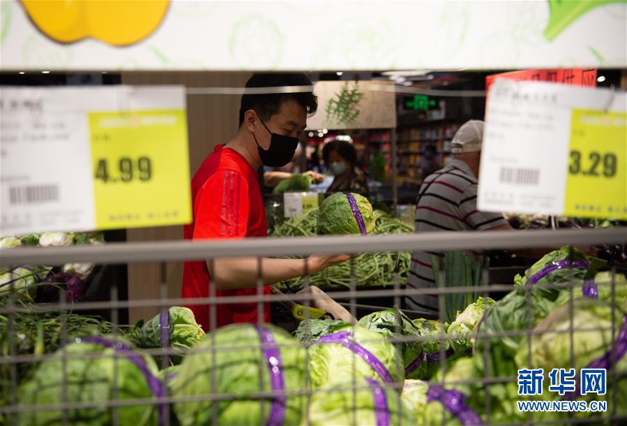 6月17日8时许,市民在超市发双榆树店选购圆白菜。新华社发(陈钟昊 摄)