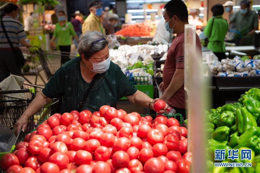 6月17日8时许,市民在超市发双榆树店选购西红柿。新华社发(陈钟昊 摄)