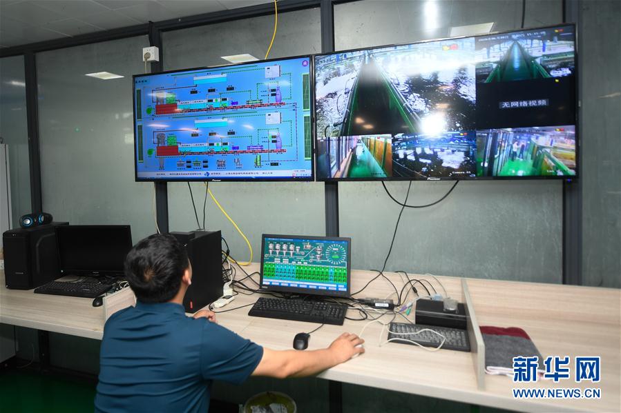 6月18日,技术人员在智能化循环水养殖车间监控运行情况。 新华社记者 黄宗治 摄