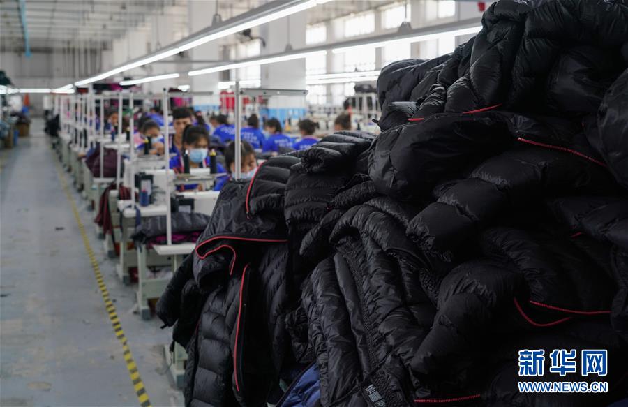 新疆喀什市一家服装生产企业车间堆放着制成的羽绒服(6月11日摄)。新华社记者 阿曼 摄