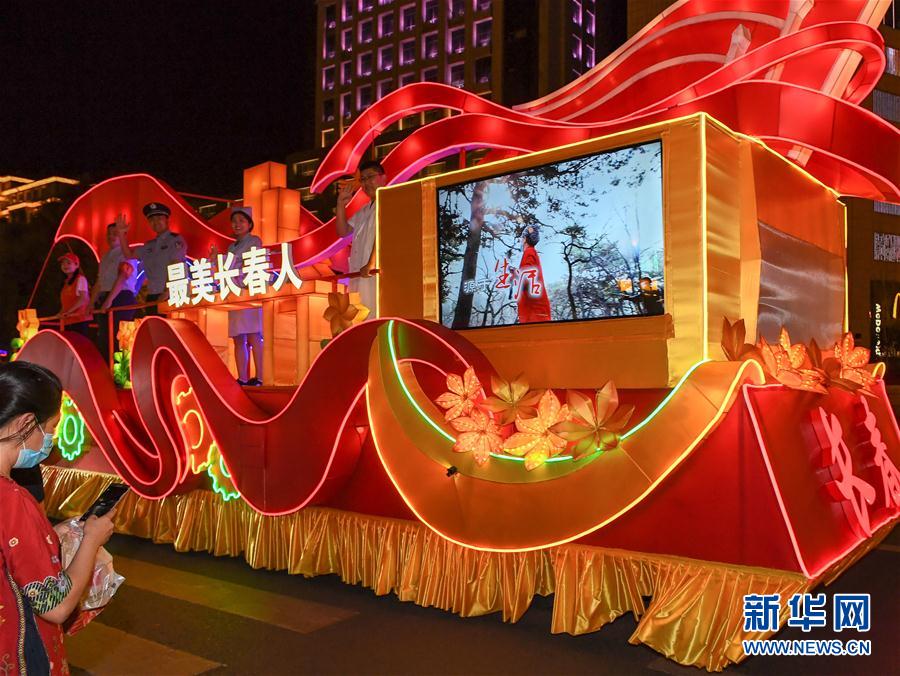 6月19日,花车在长春市人民大街上巡游。 新华社记者 张楠 摄