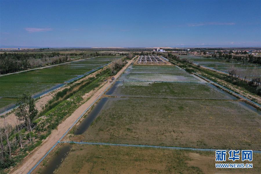 这是6月19日拍摄的新疆福海县阿尔达乡阿尔达村的稻田(无人机照片)。 为做好脱贫攻坚与乡村振兴有效衔接,新疆福海县引进优质品种水稻,利用阿尔达乡2000亩土地进行试种植,力图在新疆北部高寒地区突破大面积水稻种植的难题。此次试种,阿尔达乡从黑龙江省共引进7种优质品种水稻,4月3日起在大棚开始育苗,5月底完成插秧,预计收割时间为9月中下旬。 新华社记者沙达提摄