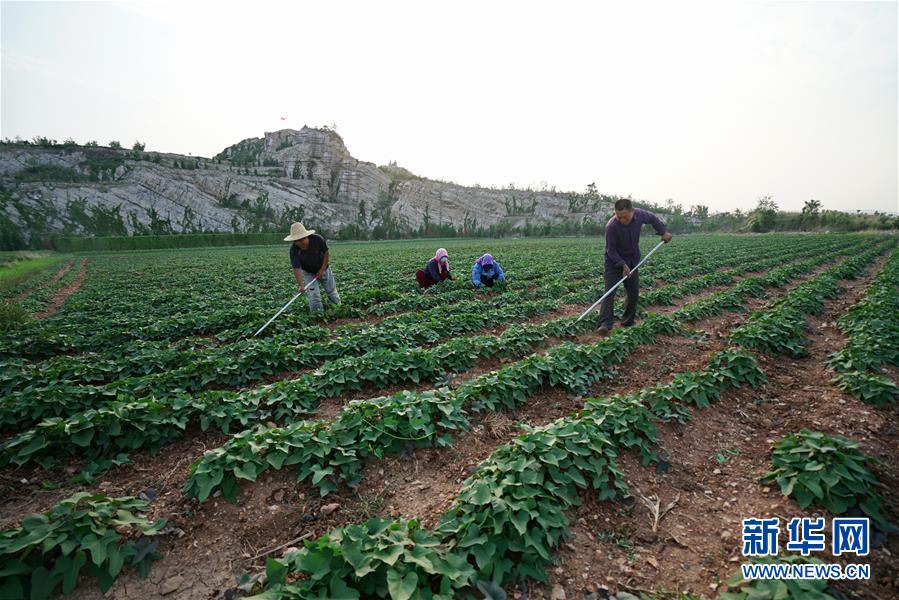 6月19日,河北省地矿局第二地质大队的工人在河北省滦州市榛子镇椅子山经过修复后复垦的区域内打理种植的农作物。 近年来,河北省滦州市将矿山生态环境修复治理作为生态文明建设的重点,按照因地制宜、分类施策的原则持续推进矿山修复治理工程,以解决矿山开采带来的土地荒芜、环境破坏等问题。截至2019年底,滦州市通过工程治理、转型利用等方式共治理矿山迹地31处,2020年计划对66处矿山迹地按照“一矿一策”原则进行整治。 新华社记者 牟宇 摄