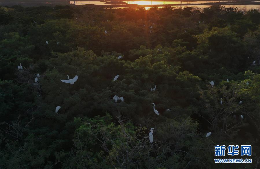 6月19日,一群鹭鸟在唐山市丰南区滩涂林地的树上休息(无人机照片)。 近年来,河北省唐山市丰南区不断加大生态环境治理力度,滩涂林地吸引多种鹭鸟来此筑巢,繁衍生息,绘就优美和谐的生态画卷。 新华社记者 杨世尧 摄