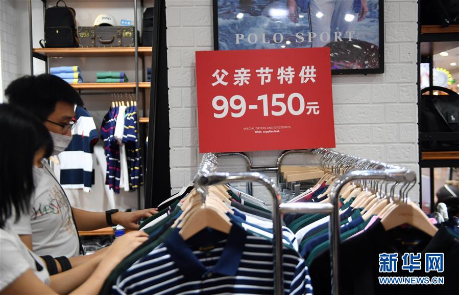 6月20日,消费者在长春市欧亚卖场购买“父亲节”促销商品。 “父亲节”临近,长春市各大商场里的“祝福经济”商品备受消费者青睐,人们纷纷预订和选购礼品,为父亲送上节日的温馨祝福。 新华社记者 林宏 摄