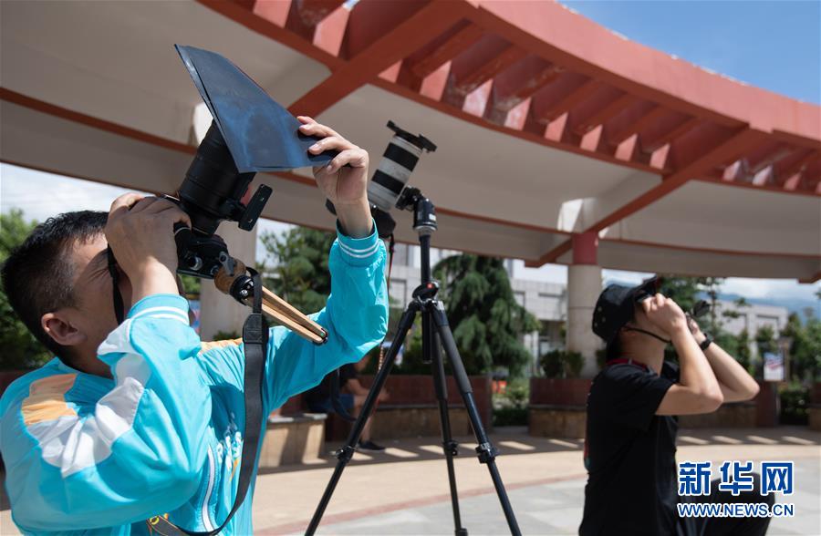 6月21日,在四川省布拖县城,摄影师在拍摄日环食。 “日环食”天文景观于6月21日“夏至日”下午在天宇上演。 新华社记者 江宏景 摄