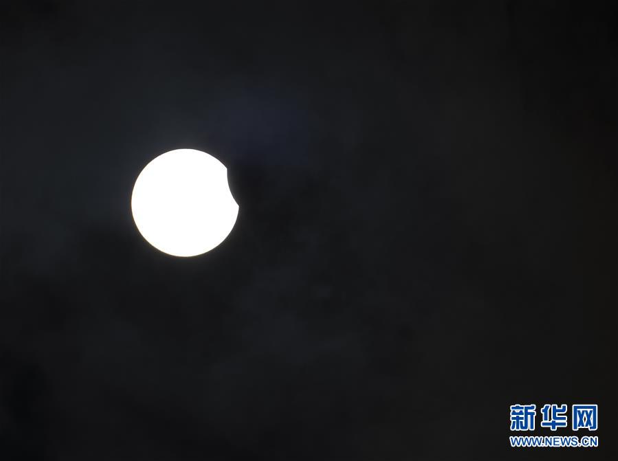 在拉萨观赏到的日食(6月21日摄)。 “日环食”天文景观于6月21日“夏至日”下午在天宇上演。 新华社记者 普布扎西 摄
