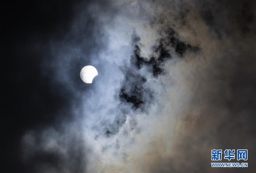 在拉萨观赏到的日食(6月21日摄)。 “日环食”天文景观于6月21日“夏至日”下午在天宇上演。 新华社记者 孙非 摄