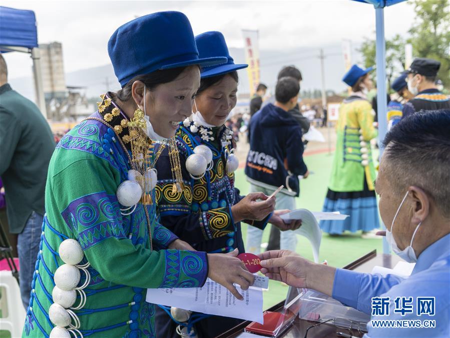 6月21日,在布拖县依撒社区安置点,村民在办理确认房号手续。 新华社记者 李梦馨 摄