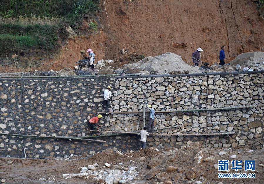 在广西融水苗族自治县香粉乡雨卜村,工人在修筑旅游公路(2016年11月17日摄)。 新华社记者 黄孝邦 摄