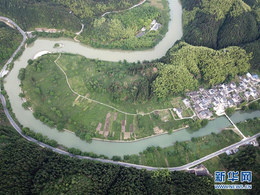 安徽省黄山市休宁县流口镇茗洲村(5月12日摄,无人机照片)。新华社记者 张端 摄