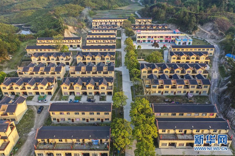 这是广西南丹县“千家瑶寨·万户瑶乡”八圩瑶寨易地扶贫搬迁安置点(4月29日摄,无人机照片)。新华社记者 曹祎铭 摄