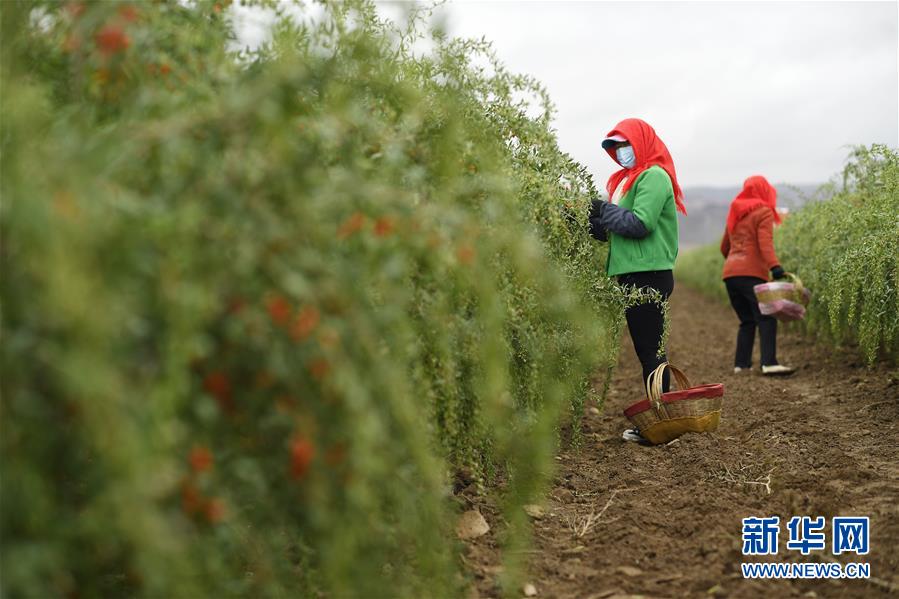 工人在宁夏中宁县百瑞源枸杞基地采摘枸杞鲜果(6月22日摄)。 近日,宁夏百瑞源枸杞股份有限公司与中国农业大学合作科研项目——锁鲜枸杞工艺技术正式运行投产。宁夏枸杞在市场销售中以干果为主。锁鲜枸杞生产线的投产,突破了传统的枸杞制干技术,不破枸杞表面保护膜,让宁夏枸杞传统制干模式迎来了新的变革。 新华社记者 王鹏 摄