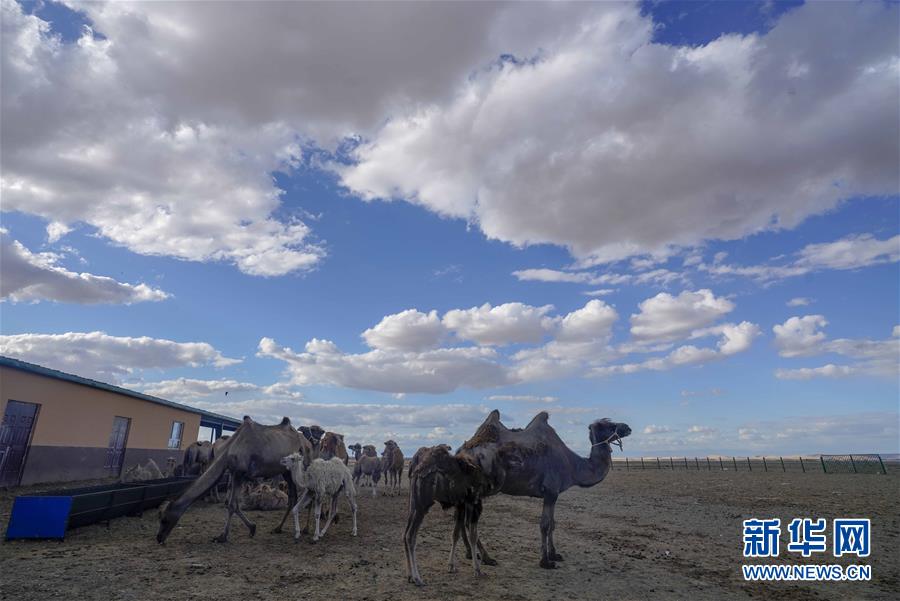 在吉木乃县万驼园内拍摄的正在脱毛的骆驼(6月21日摄)。这些掉落的驼毛可以加工成驼绒产品。新华社记者 赵戈 摄