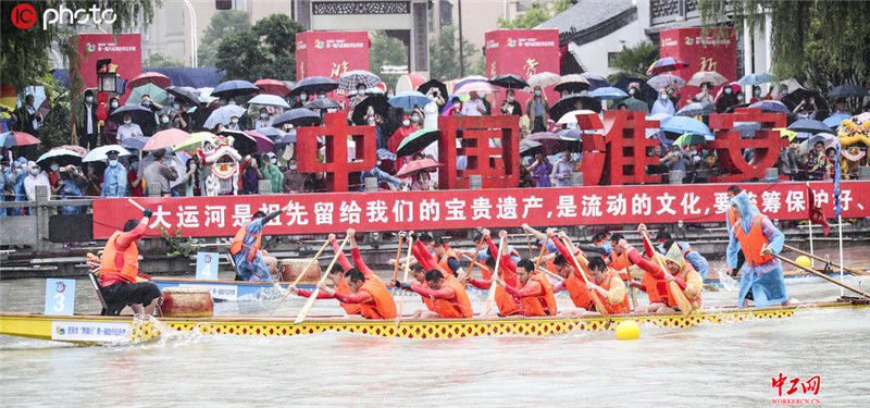 江苏淮安:赛龙舟迎端午 104支队伍参赛
