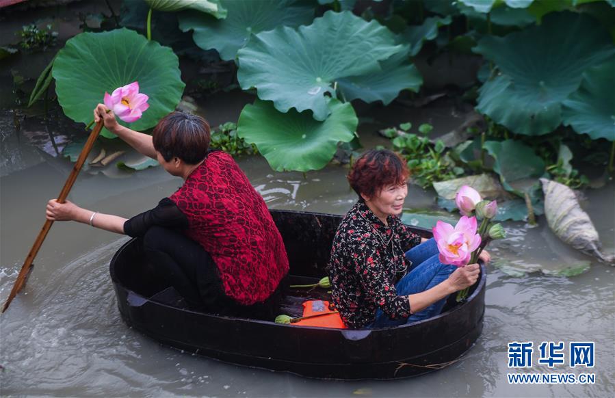 6月23日,东林镇村民划着菱桶采收荷花和莲蓬。 当日,浙江省湖州市东林镇在泉心村荷花池举办“庆端午 划菱桶”趣味活动。村民们划着菱桶在水面上你追我赶,同时采收荷花和莲蓬,呈现出水乡特有的端午节日氛围。在河网密布的东林镇,菱桶是水乡家家户户都有的一种传统水上劳动工具,村民在捕鱼、采菱、采荷时都要用到。 新华社记者 徐昱 摄