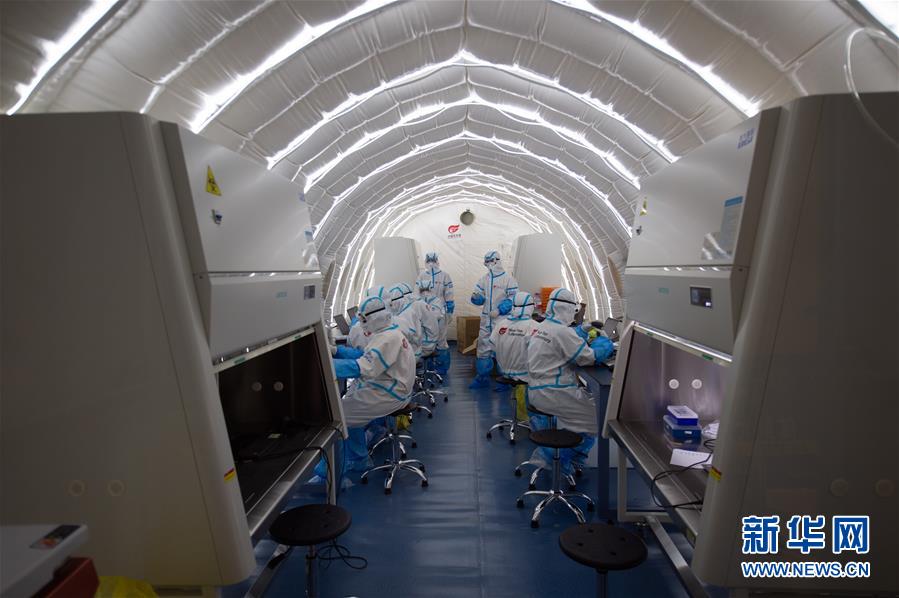 6月23日,工作人员在气膜舱内处理样本。新华社发(陈钟昊 摄)