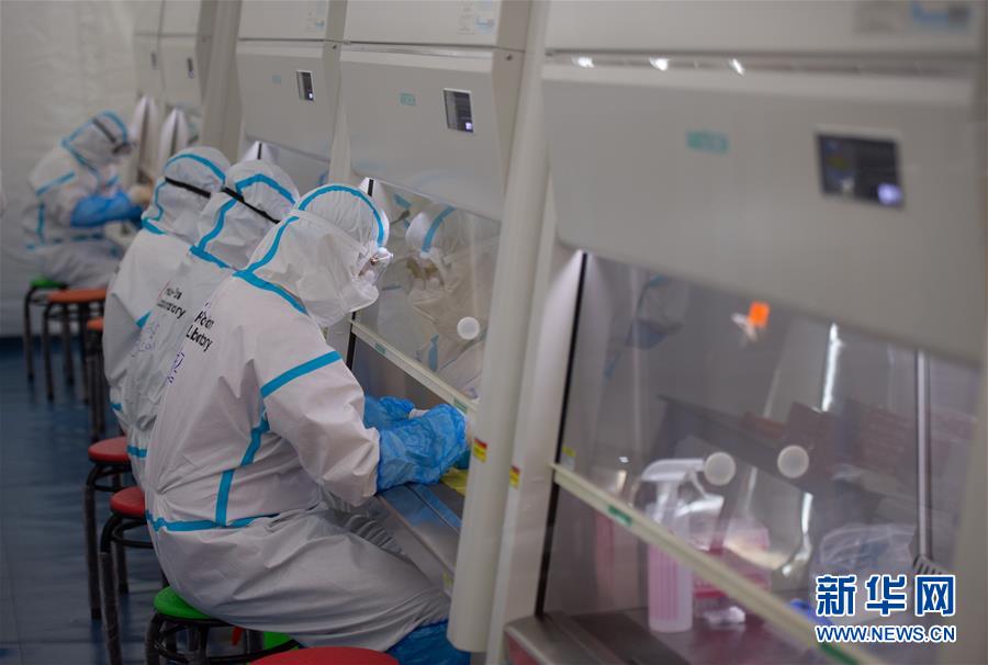 6月23日,工作人员在气膜舱内处理样本。新华社发(陈钟昊 摄)