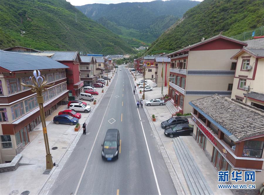 九寨沟地震震中九寨沟县漳扎镇新貌(无人机照片,6月18日摄)。新华社记者 刘坤 摄