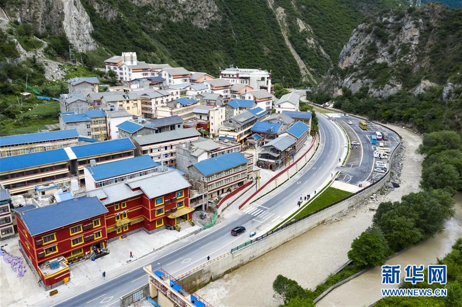 这是四川省阿坝藏族羌族自治州九寨沟县漳扎镇(无人机照片,6月18日摄)。新华社记者 沈伯韩 摄