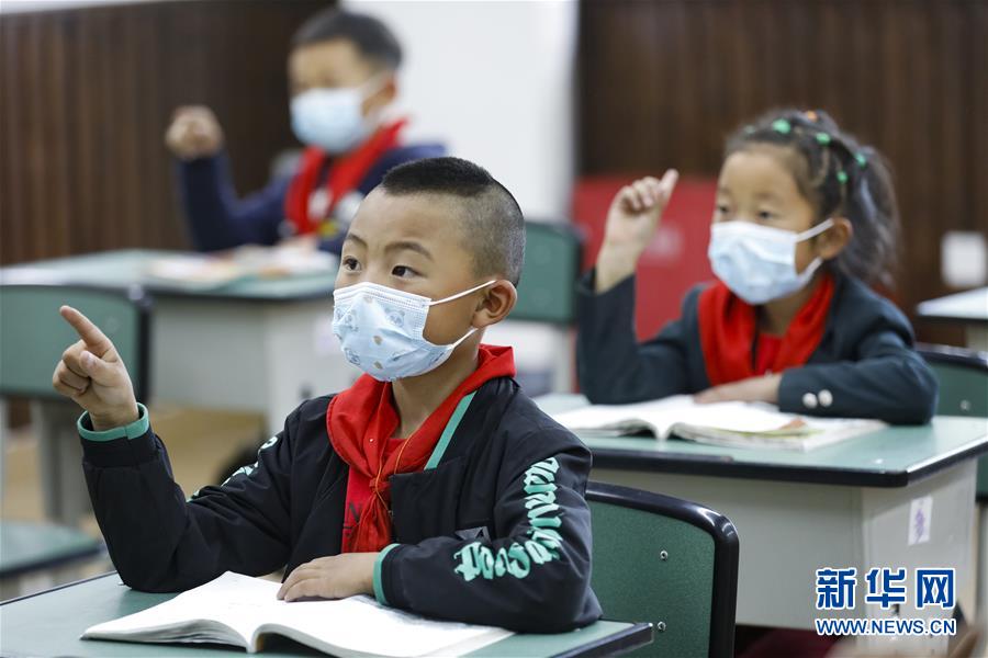 四川省阿坝藏族羌族自治州九寨沟县九寨沟小学(原漳扎镇小学)一年级学生在上语文课(6月18日摄)。“8·8”九寨沟地震使漳扎镇小学受损严重,新建校舍于2019年9月投入使用,目前有391名学生在这里就读。新华社记者 沈伯韩 摄