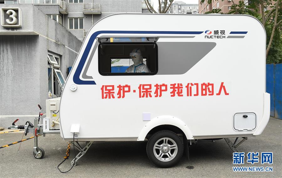 6月24日,中国中医科学院广安门医院的医务人员在北京市西城区手帕口南街核酸检测集中采样点工作。 大规模的核酸检测是应对新冠肺炎疫情中进行病例筛查、做到“早发现”的主要手段。为此,北京市稳步提升全市核酸检测能力,日核酸检测能力已由4万份提升至30万份以上。 新华社记者 邢广利 摄